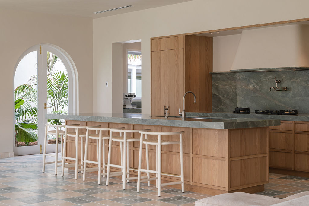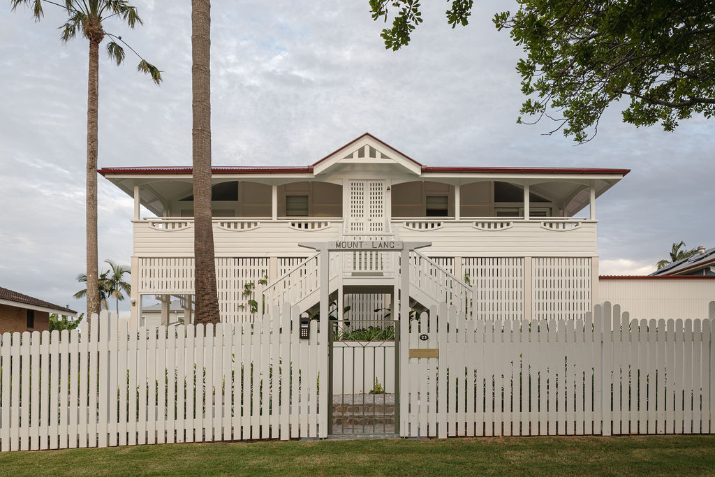 Mount Lang is an ambitious project combining a heritage-listed Queenslander’s elegance with contemporary design elements. Scheduled for completion in late 2025, the project involves a complete renovation of the original house, the building underneath, and a modern extension. Careful consideration is given to preserving the character of the heritage home while introducing contemporary finishes. The internal spaces feature Cerano render linings, marble checker-patterned floor tiles, and striking arched doors, all of which add to the home’s refined aesthetic. The home’s two levels are united by a suspended slab design, while the large landscaping package will enhance the connection to the outdoor environment. The use of imported stone and materials reflects a commitment to creating a timeless, luxurious feel throughout the property.